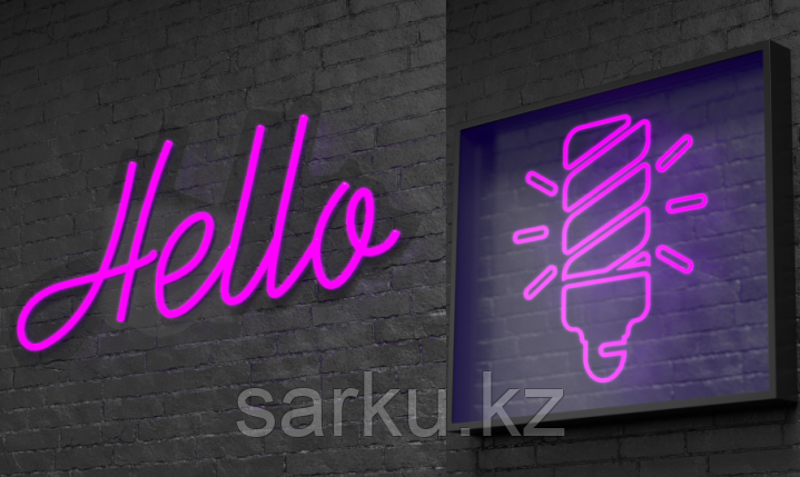 Основа изготовлена из прозрачного акрила, где в отфрезерованный паз вклеивается гибкий световой шнур, имитирующий неоновое свечение. Аккустический силовой провод устанавливается максимально не заметно. Чаще всего подобные вывески размещают в интерьерах, либо в пространстве витрин.